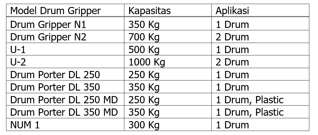 Drum Gripper merupakan alat bantu angkut Drum yang fungsinya untuk memindahkannya dari satu tempat ke tempat lainnya.