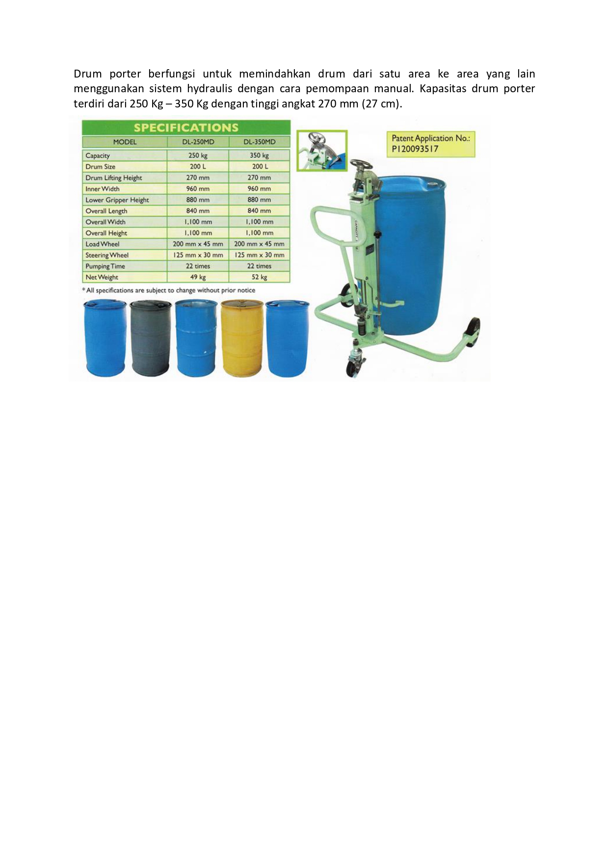 alat bantu ini menjadikan pemindahan Drum lebih mudah, cepat, efisien. Penggunaan alat ini menjadi andalan bagi karyawan, karena tidak bersusah payah untuk tenaga, hingga waktu yang dibutuhkan.